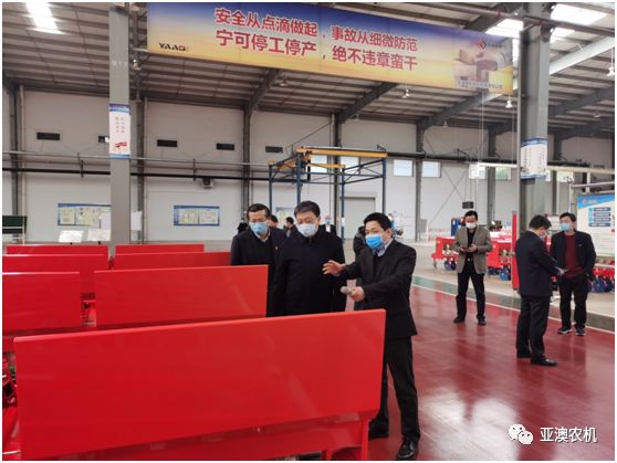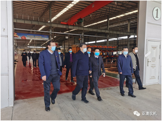 霍好勝一行在亞澳農(nóng)機(jī)調(diào)研與公司總經(jīng)理史炳哲進(jìn)行深入交流,詳細(xì)了解疫情防控、復(fù)工進(jìn)度和遇到的困難等問(wèn)題,并深入生產(chǎn)區(qū)一線現(xiàn)場(chǎng)查看企業(yè)的生產(chǎn)狀況。